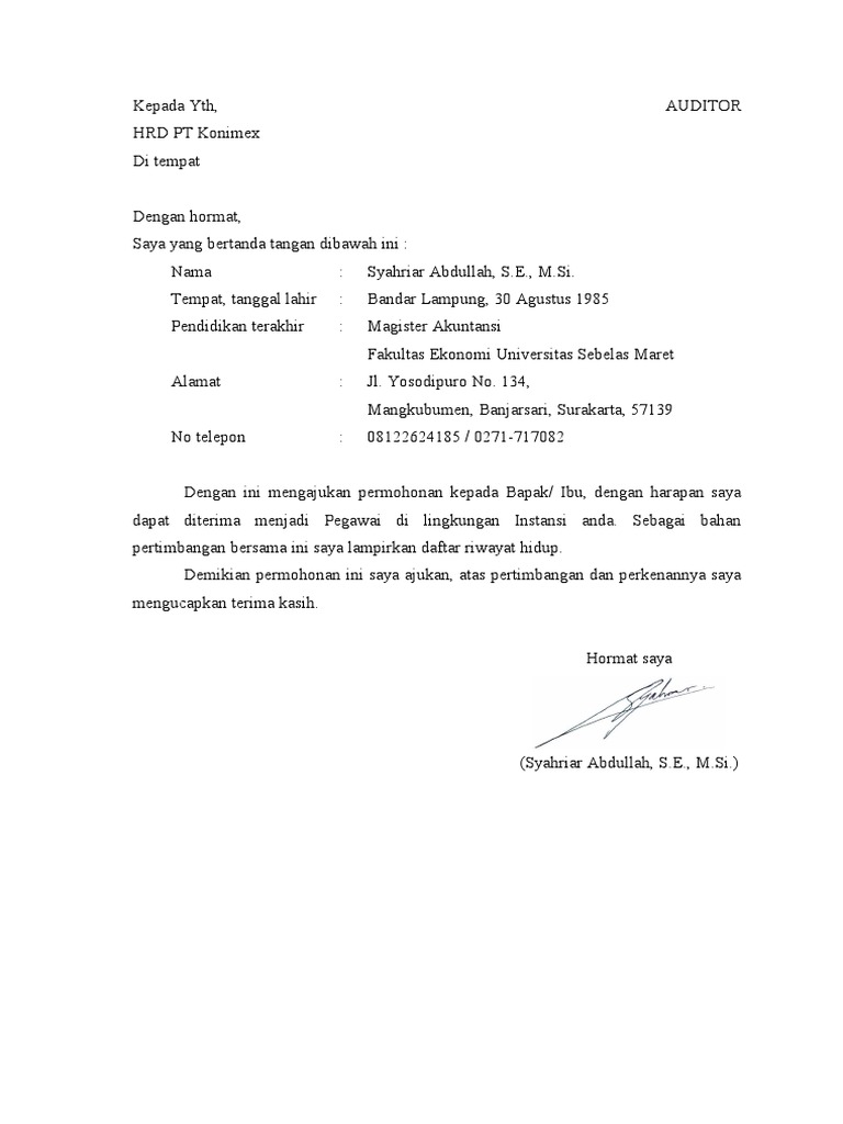 Dengan hormat, sehubungan dengan adanya informasi lowongan kerja di pt. Anda tentunya harus mencari perusahaan yang mau menerima calon karyawan yang belum memiliki pengalaman. Bekerja di bumn memberikan banyak keuntungan terutama dalam masalah finansial. Contoh surat lamaran kerja untuk freshgraduate. Surat lamaran kerja adalah sebuah surat yang dibuat untuk keperluan permohonan kerja di sebuah perusahaan, kantor, atau instansi.