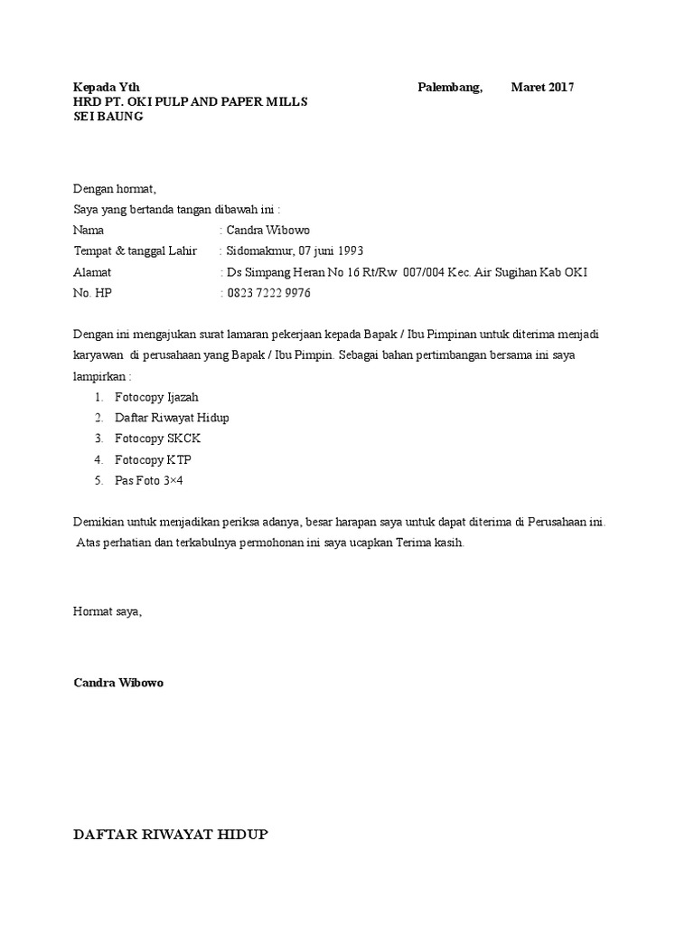Demikian surat lamaran kerja ini saya buat, saya sangat berharap dapat diikutsertakan dalam tahapan proses seleksi berikutnya. Dan berikut kami akan memberikan contoh surat lamaran kerja lengkap. Format surat lamaran kerja di pt sebagai karyawan bagi lulusan sma. Contoh surat kerja untuk yang berpengalaman. Contohnya surat lamaran kerja menjadi karyawan dengan sumber dari iklan.