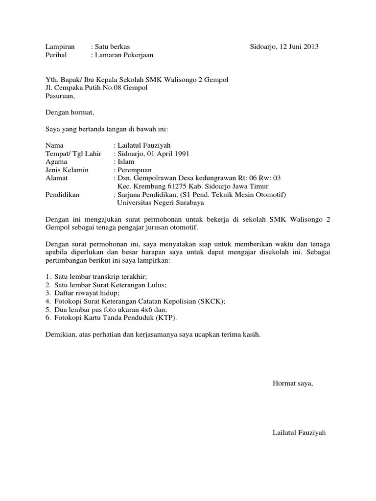 Perhatikan kebersihan surat lamaran kerja, jangan sampai ada coretan atau bekas penghapus dalam surat lamaran kerja, jika salah menulis lebih baik tulis ulang di kertas baru, jangan apabila masih belum jelas, dapat langsung menyebutkan jabatannya. Surat lamaran ditulis dengan bahasa yang sopan dan simpatik 4. Majalahpendidikan.com akan menyampaikan materi pembelajaran dengan judul contoh surat lamaran kerja bahasa indonesia. Mantappu djiwa bahwa perusahaan yang bapak/ibu pimpin sedang membutuhkan karyawan bagian staf accounting. Contoh pertama yaitu contoh surat lamaran pekerjaan sederhana untuk bekerja di pt yang baik contoh berikutnya adalah contoh surat lamaran pekerjaan tanpa pengalaman kerja sebelumnya.